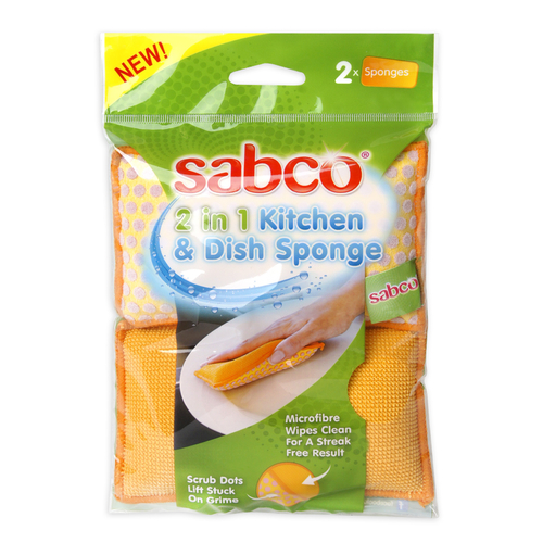 Sabco 2 in 1 Kitchen & Dish Sponge 11 x 6cm 2pk