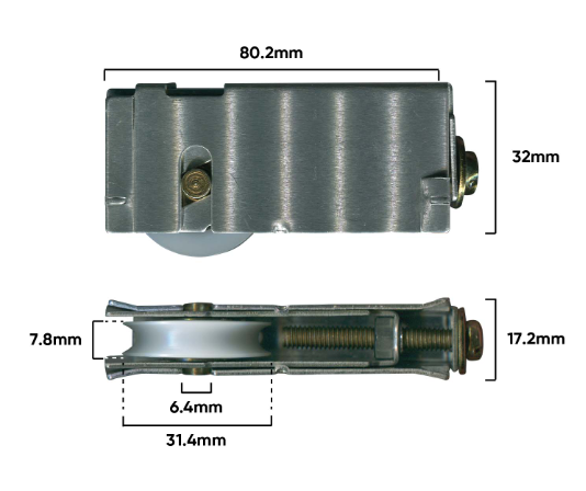 Carriage Slid Door Alu Adj & Roller 17mm fins 25kg(A071)