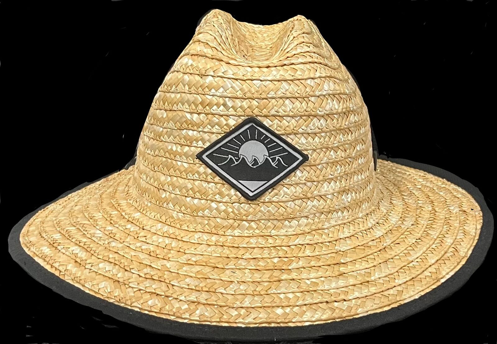 Hat Straw Wide Brim Adult 37cm x 35cm Natural With Black Trim