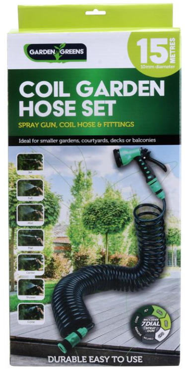 Hose Recoil Heavy Duty 15cm green 7 Spray Function