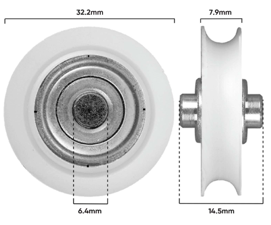 Roller 32mm dia 6.4mm Axle H/D (D142)