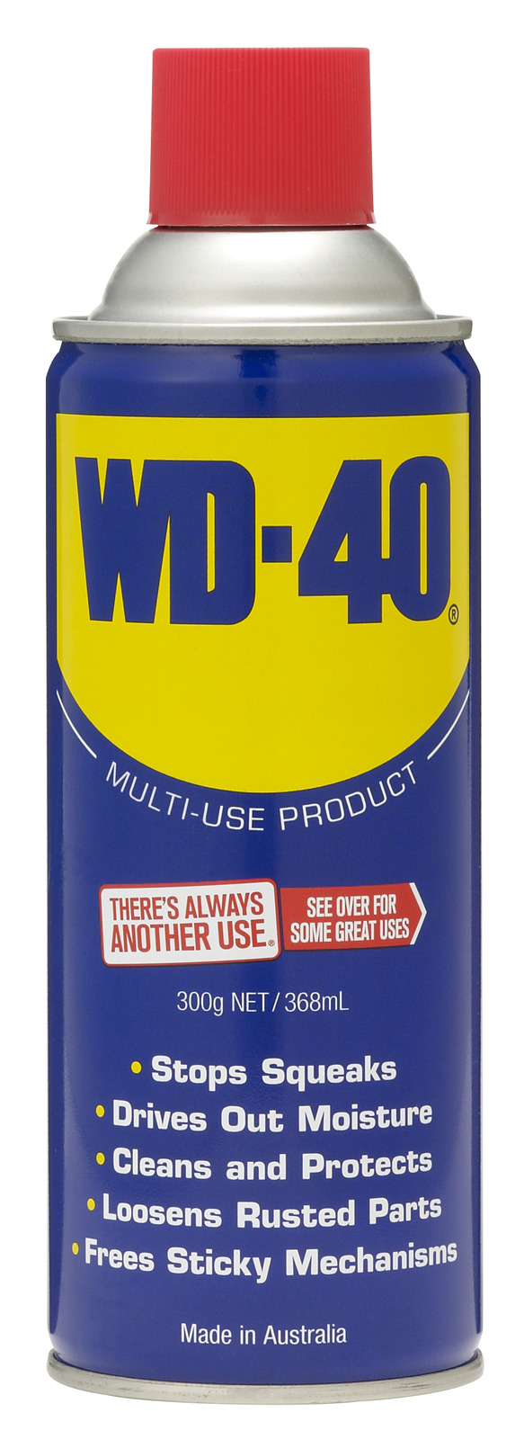 WD-40 Multi-Use Product protects metal from rust and corrosion, penetrates stuck or jammed parts, displaces moisture, and lubricates just about anything. WD-40 Multi-Use Product is also great when it comes to cleaning grease, grime, and other marks from most surfaces.